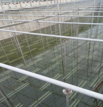3、安裝、維修,無需放水、池內(nèi)無需任何配置,在原使用鼓風曝氣的進氣管道不變的條件下無需放水可直接更換為本懸掛鏈式曝氣器。