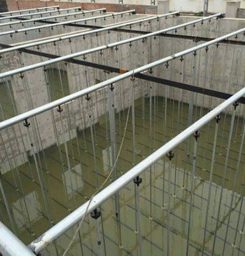 2、在已運行的曝氣器的效率低或堵塞頻繁不便維修時,可用懸掛鏈曝氣器進行改造,提高增氧能力和攪拌效果。