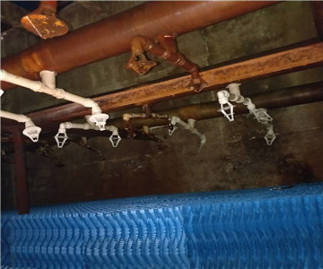 在清理完泥垢和廢棄的冷卻塔填料后,要更換噴頭,因?yàn)槎鄶?shù)冷卻塔填料托架都是玻璃鋼材質(zhì)的,時(shí)間用久了就會(huì)老化,承托效果下降,所以在更換冷卻塔天聊的同時(shí)也需要更換托架,并且檢修排水管。